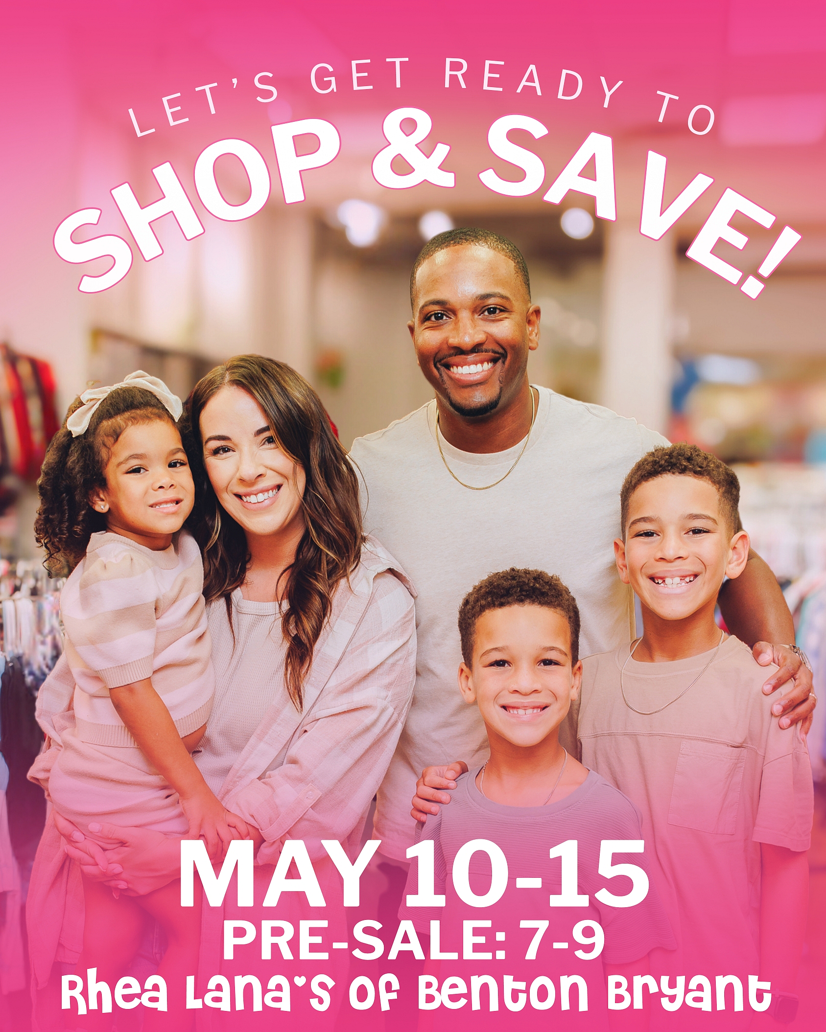 Rhea Lana’s of Benton Bryant is a semi-annual event where families come together to sell over 60,000 high-quality children’s items—including clothing and shoes (newborn through high school sizes), toys, books, baby equipment, and so much more—all at affordable prices.